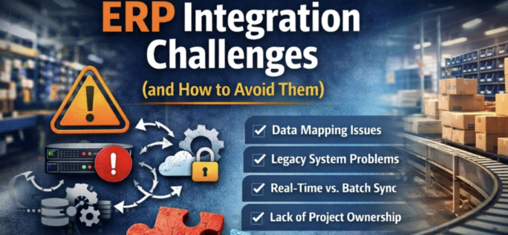 By connecting systems like CRM platforms, warehouse management systems, e-commerce platforms, and shipping software, ERP integrations allow data to flow automatically across the business. Industry research shows that ERP systems and integrated platforms improve operational efficiency, reduce inventory costs, and increase productivity across manufacturing and distribution organizations. However, integration projects can present several challenges if they are not carefully planned and executed.