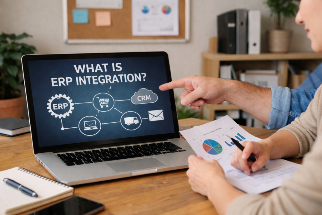 What is ERP integration? It is the process of connecting your ERP system with other business applications so data can move automatically between systems.